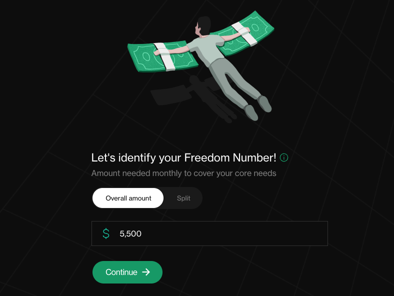 Next, you'll enter your Freedom Number, which we define as the amount needed monthly to cover your core needs.&#x20;